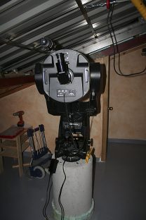 Zapata de hormigón armado de tamaño 1 m cúbico aislada de la cimentación del edificio. Columna de 75 cm de diámetro aislada de edificio de todo contacto. Telescopio en montura ecuatorial. Techo removible motorizado, Telescopio 20″ tecnología Smith Cassegrain. Observaciones visuales y fotográficas. Sala de mecanismos e informática anexa a la zona de observación. Capacidad para 4 personas. Sistema de autoguiado.